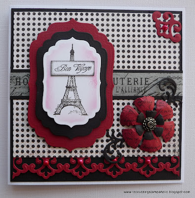 This week I have chosen classic red and black for my DT piece using the lovely Bon Voyage set from Creative Expressions. I simply stamped the Eiffel tower in black and layered up using Spellbinder Labels 4.